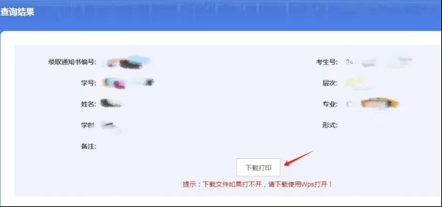 4、核对本人录取信息无误后,微信扫码进班级群,再点击“下载打印”下载录取通知书。