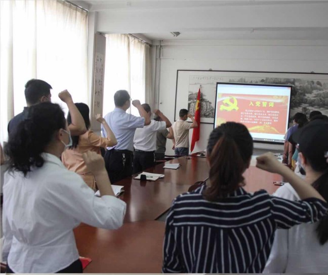 7月1日,洹滨校区党总支组织全体党员教师开展“重温入党誓词”活动,并为部分党员发放政治生日贺卡。