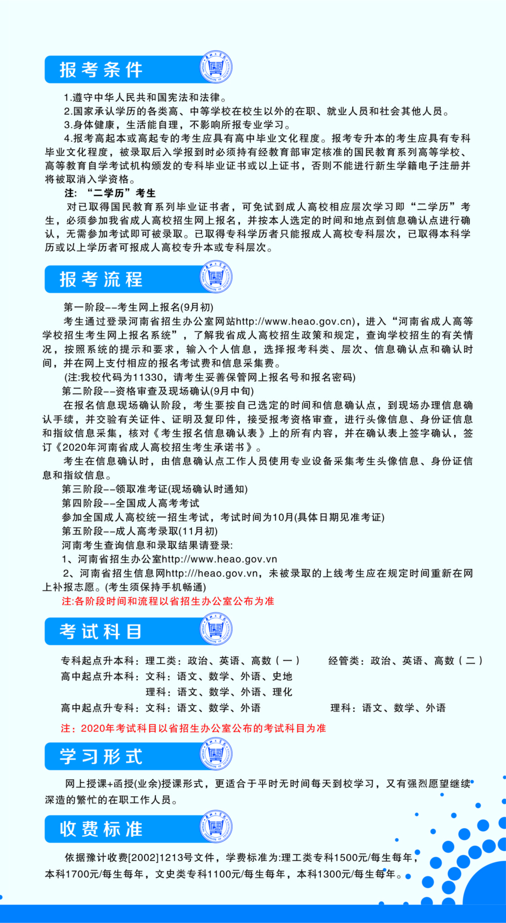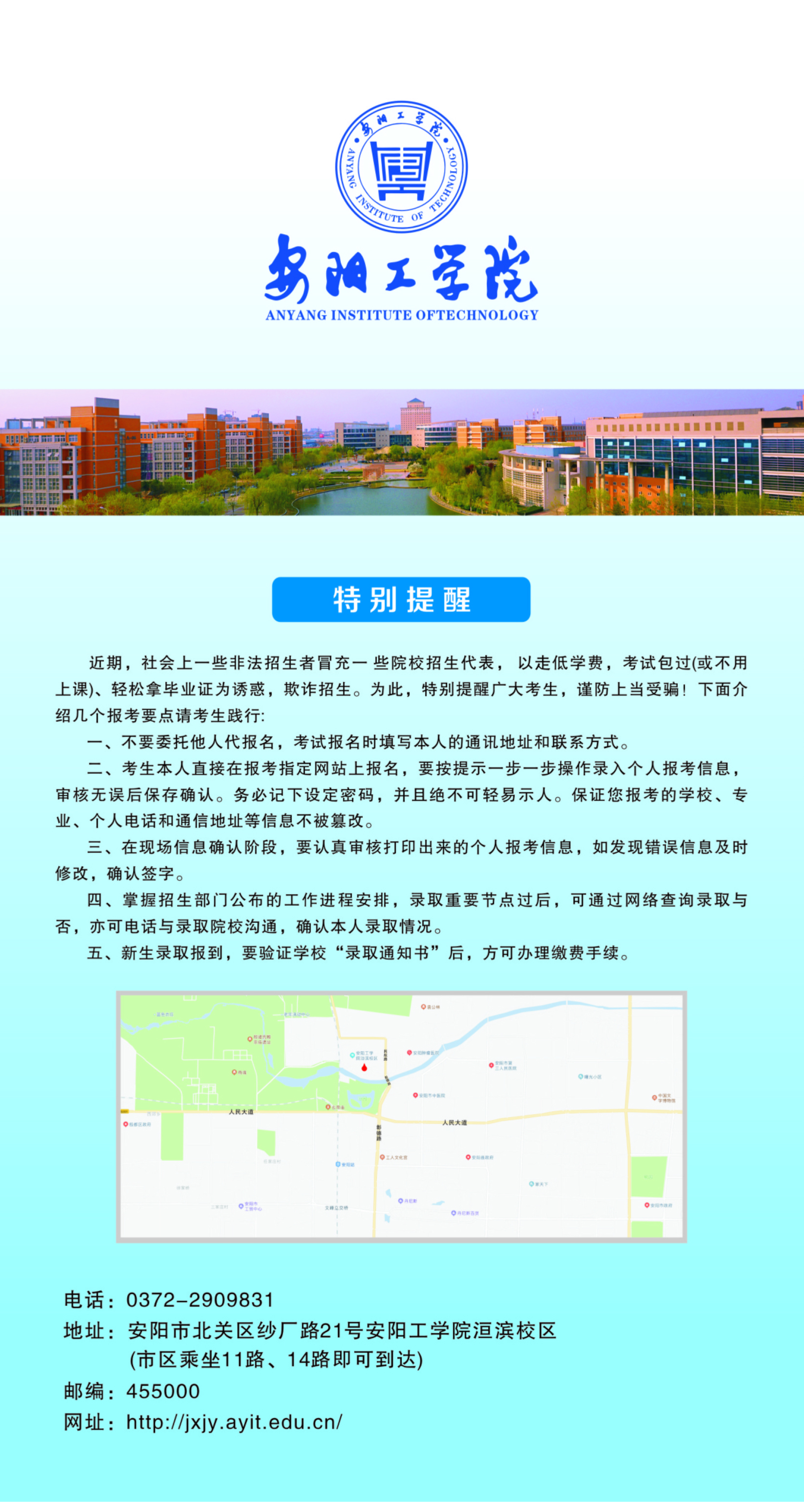教务员工科:0372-2909999 招生培训科:0372-2909831